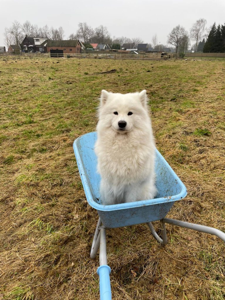Djo-Djo is een lief en enthousiast teefje. Ze werkt graag voor je, hier haalt ze haar plezier uit. Rennen en spelen met de andere honden vind zij ook heel leuk! Daarnaast loopt ze ook regelmatig mee met het hardlopen.